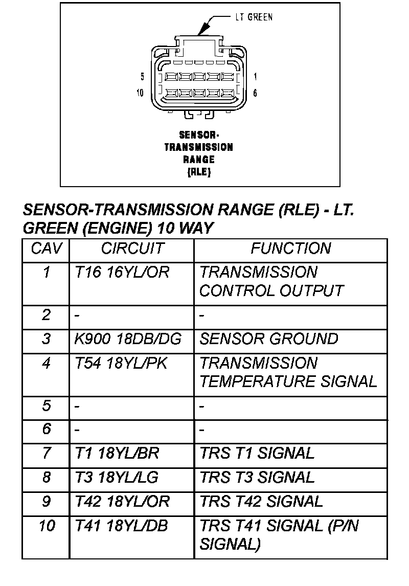 Sensor-Transmission Range (RLE) - LT. Green (Engine) 10 Way: