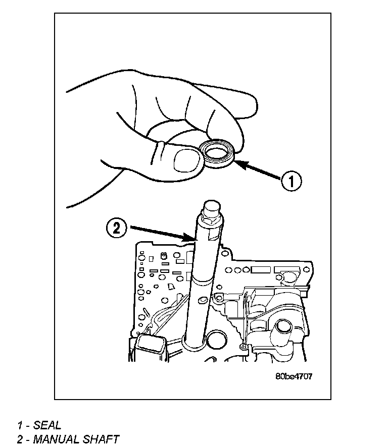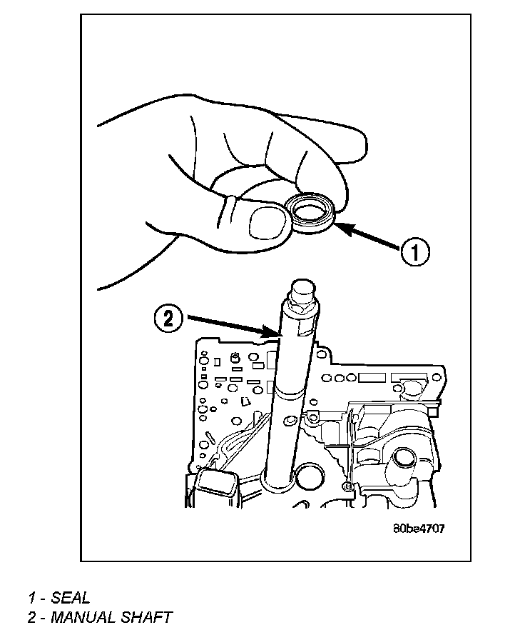 2. Remove the manual shaft seal (1).