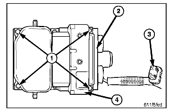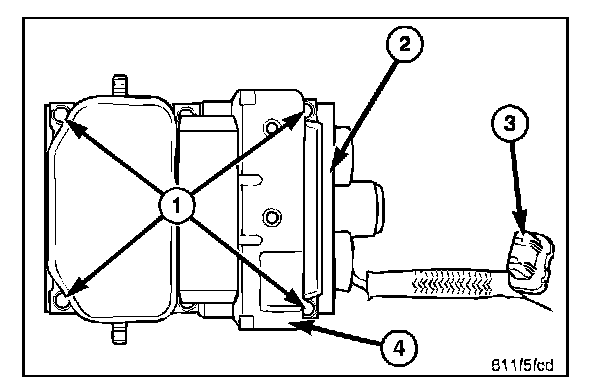 3. Disconnect the pump electrical connector 3. from the HCU (2).
