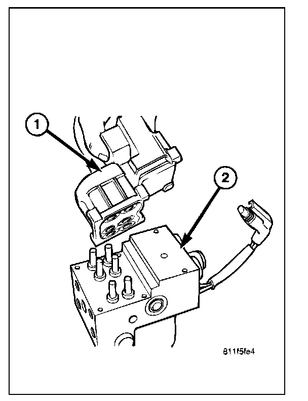 REMOVALNOTE: If the ABM needs to be replaced, the rear axle type and tire revolutions per mile must be programed into the new ABM. For axle type refer to Group 27 Rear Axle. For tire revolutions per mile, Refer to WHEEL AND TIRE SPECIFICATIONS. To program the ABM refer to the Appropriate Diagnostic Service Information.