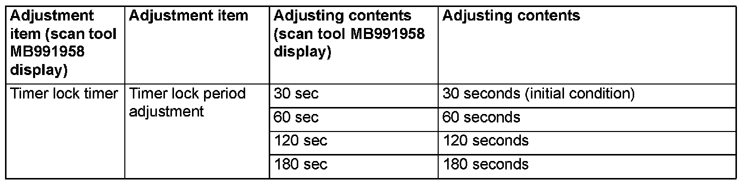 Using the ETACS system of scan tool MB991958, the following functions can be programmed. The programmed information is held even when the battery is disconnected.