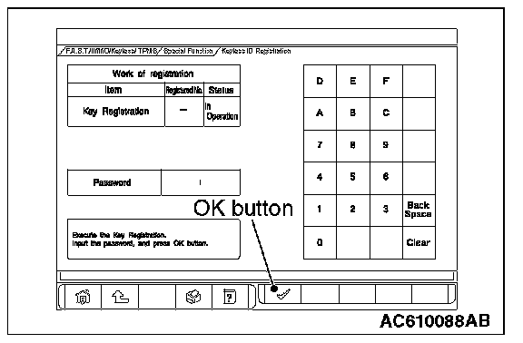 1. On the "Keyless ID Reg." screen, enter the password and press the OK button.