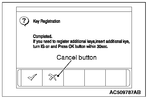 NOTE: When the key cannot be registered using scan tool MB991958, refer to Inspection Procedure 2 "The ignition key cannot be registered using scan tool. Inspection Procedure 2