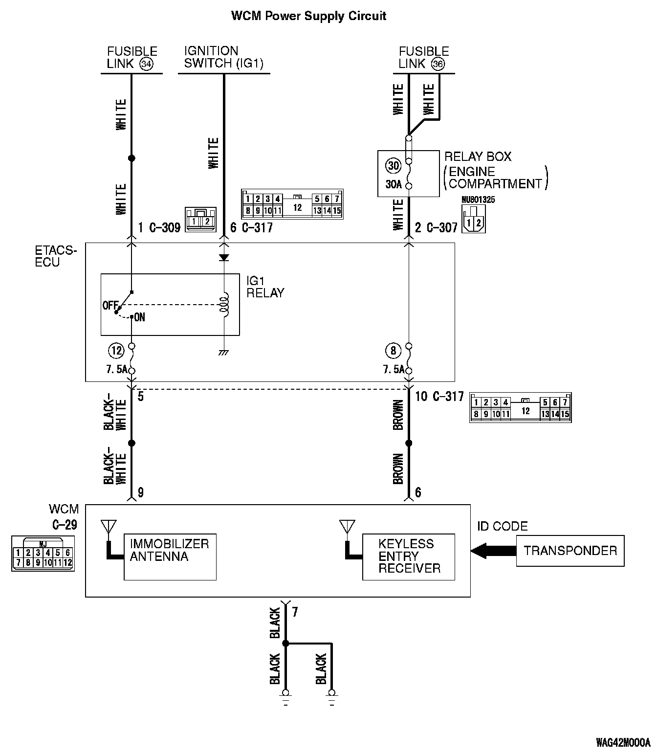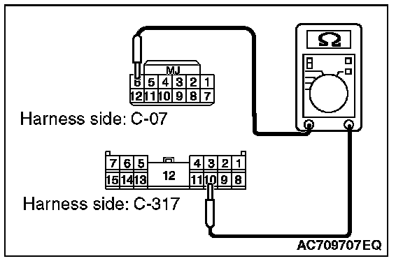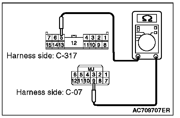1. Disconnect WCM connector C-29 and ETACS-ECU connector C-317, and check the wiring harness.