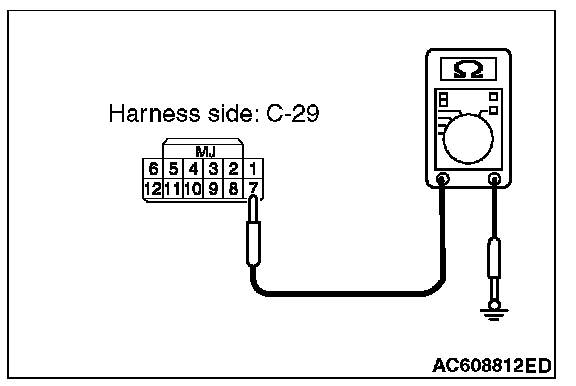 STEP 3. Check the wiring harness between the WCM connector C-29 (terminal No.7) and the ground for open circuit.
