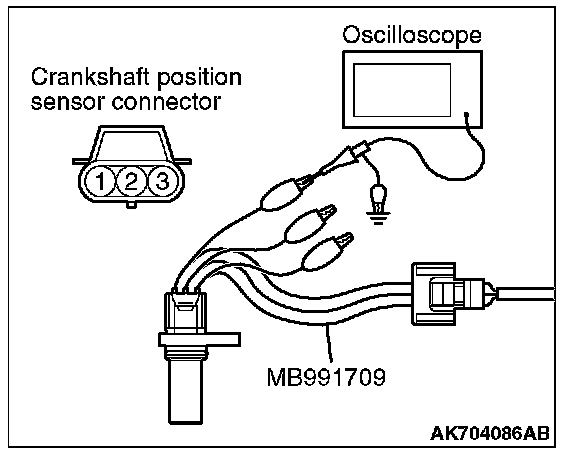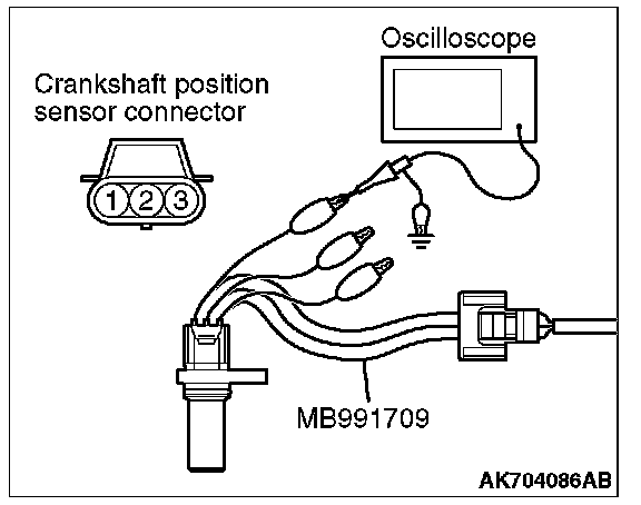 3. Disconnect the crankshaft position sensor connector, and connect the test harness special tool (MB991709) between the separated connector.
