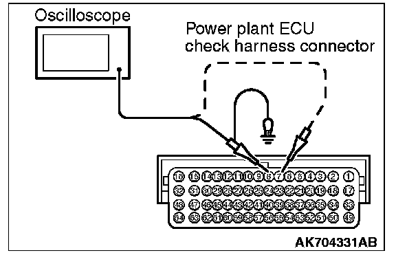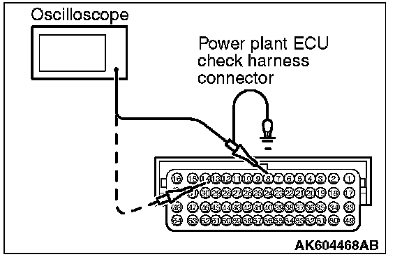 3. Connect the oscilloscope to check harness terminal No. 8. (Check the crankshaft position sensor signal wave pattern.)