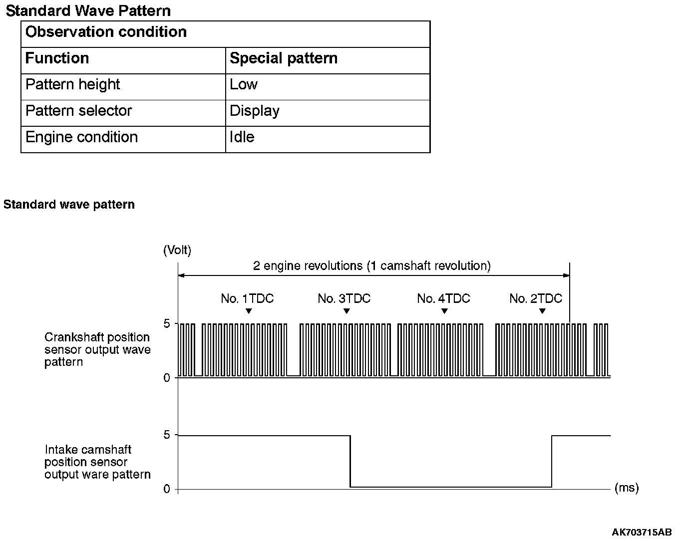 - Rectangular wave pattern is output even when the engine is not started.