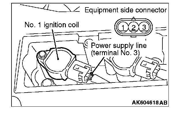 3. Set the timing light to the power supply line (terminal No. 3) of the ignition coil No. 1.