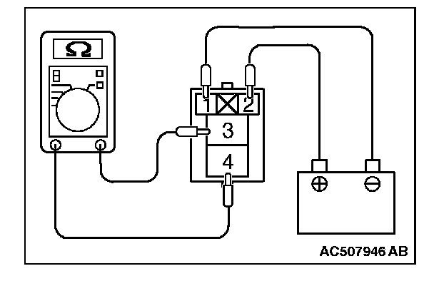 3. Check for continuity between the CVT control relay terminals No. 3 and No. 4.