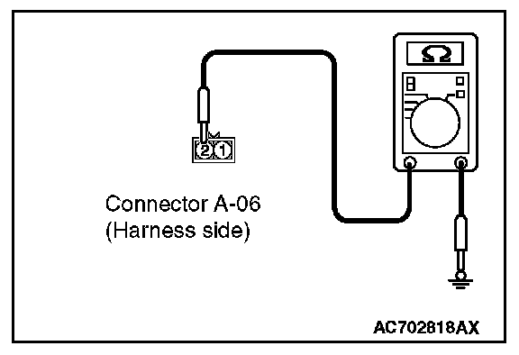 STEP 4. Check the wiring harness between hood switch connector A-06 (terminal 1) and ground.