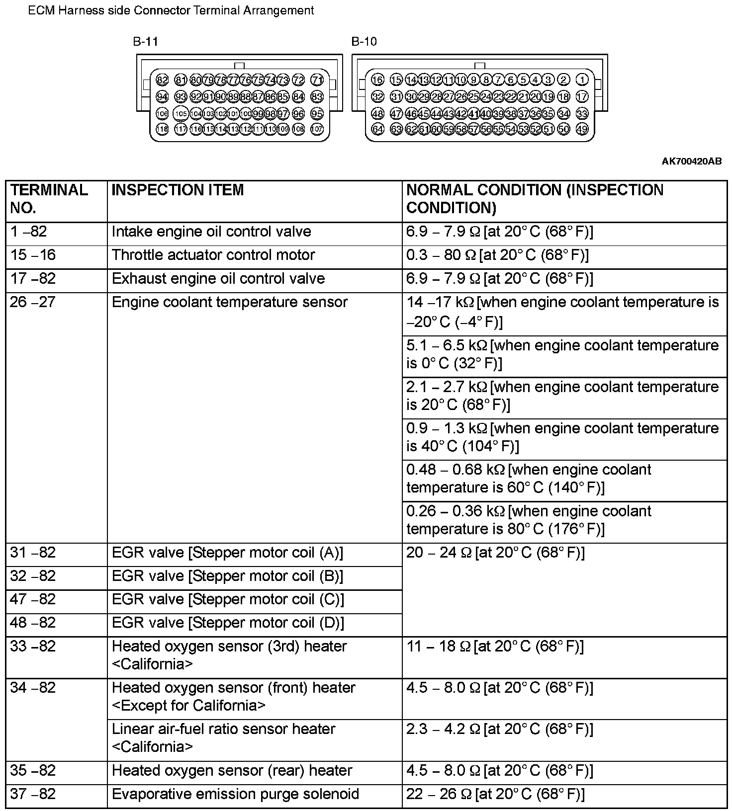 CHECK AT THE ENGINE CONTROL MODULE (ECM)1. Disconnect the ECM connectors B-10 and B-11, and connect check harness special tool MB992110 between the ECM connectors.