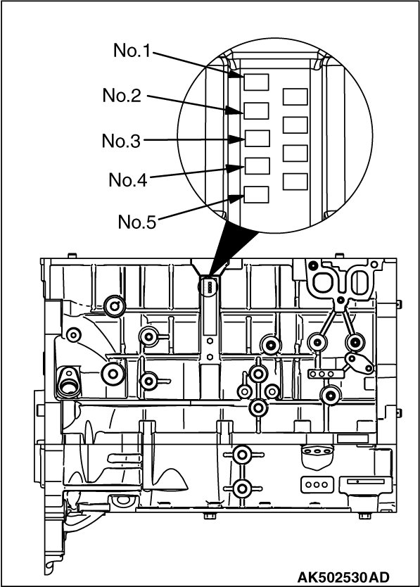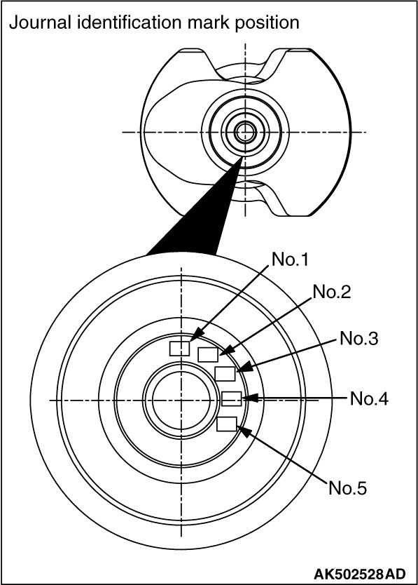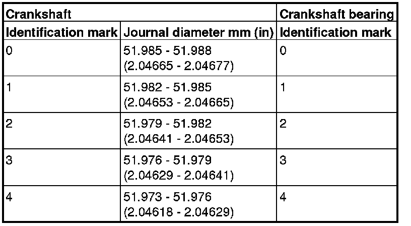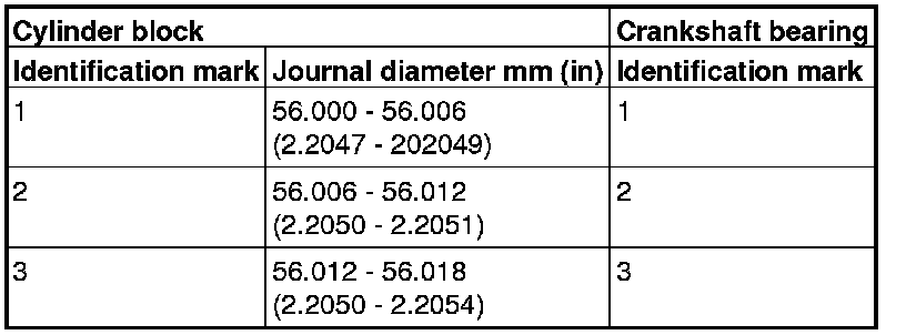 When replacing the crankshaft bearing upper, select a bearing with the size corresponding to the crankshaft journal diameter in the table below.