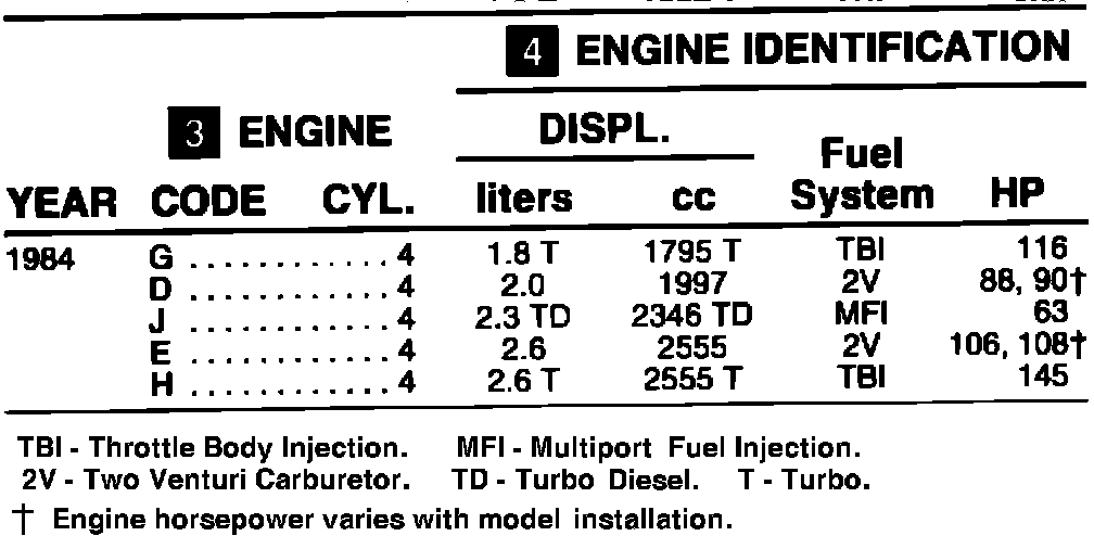 To identify an engine by the manufacturer's code, follow the four steps designated by the numbered blocks.