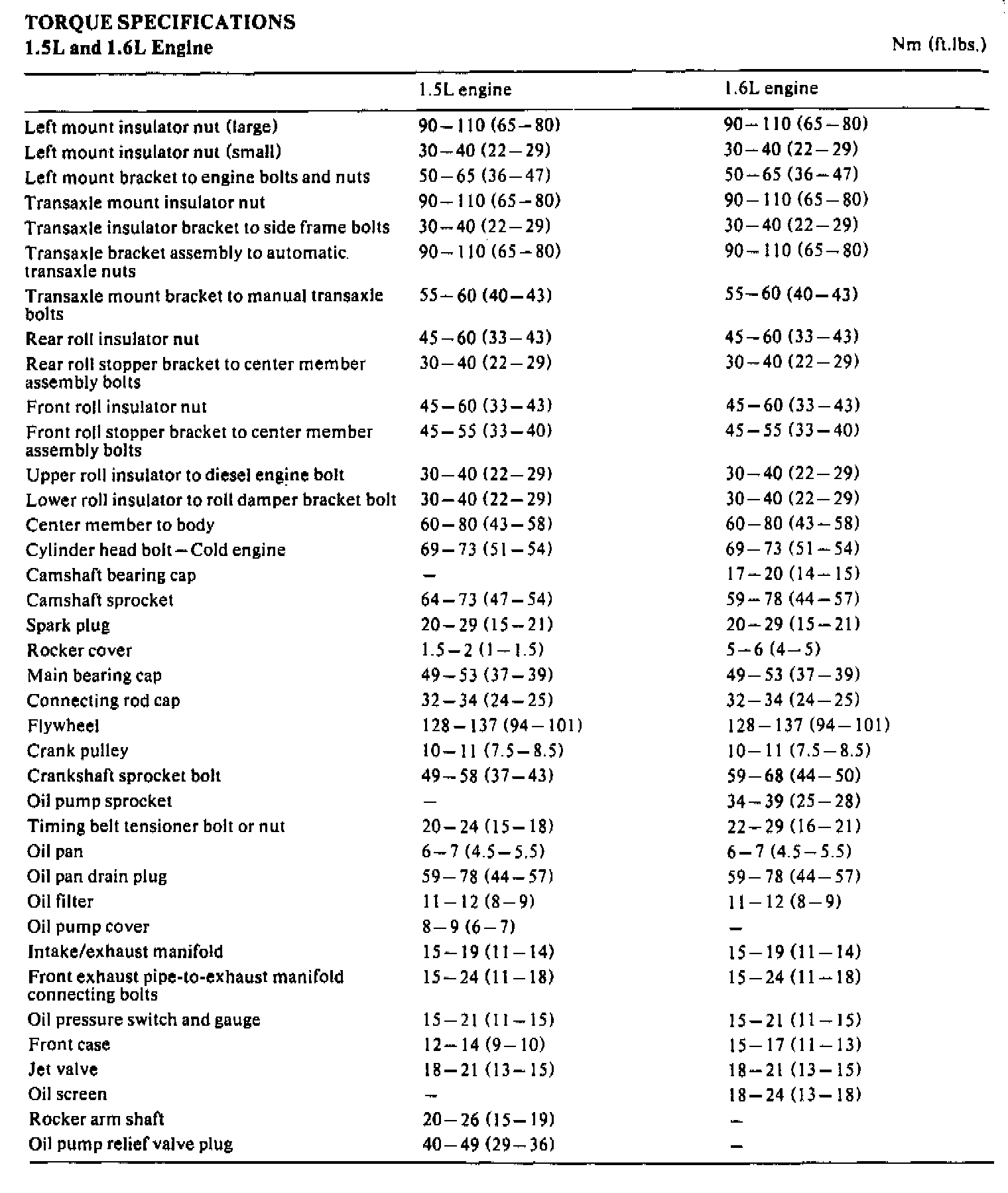 Cylinder Head Bolt Torque Sequence - 1.5 Engine: