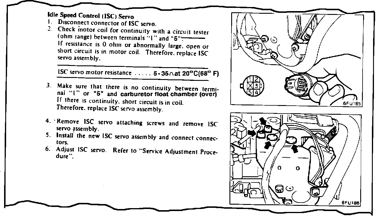 The ISC Servo description in the 1985 and 1986 Service Manuals are identical, even though the page numbers are different. Please change the number of the test terminals in the ISC Servo connector: