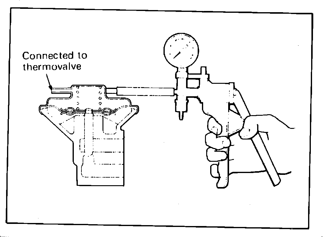 7. Connect a vacuum pump to the thermo valve and apply vacuum, Fig. 63. If it is not possible to establish a vacuum, the thermo valve is defective.