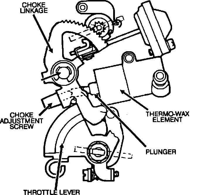 3. Spread the choke linkages to create a gap between the choke adjustment screw and the plunger of the thermo wax element (Figure 11). Make sure not to interfere with the throttle lever or other linkages.
