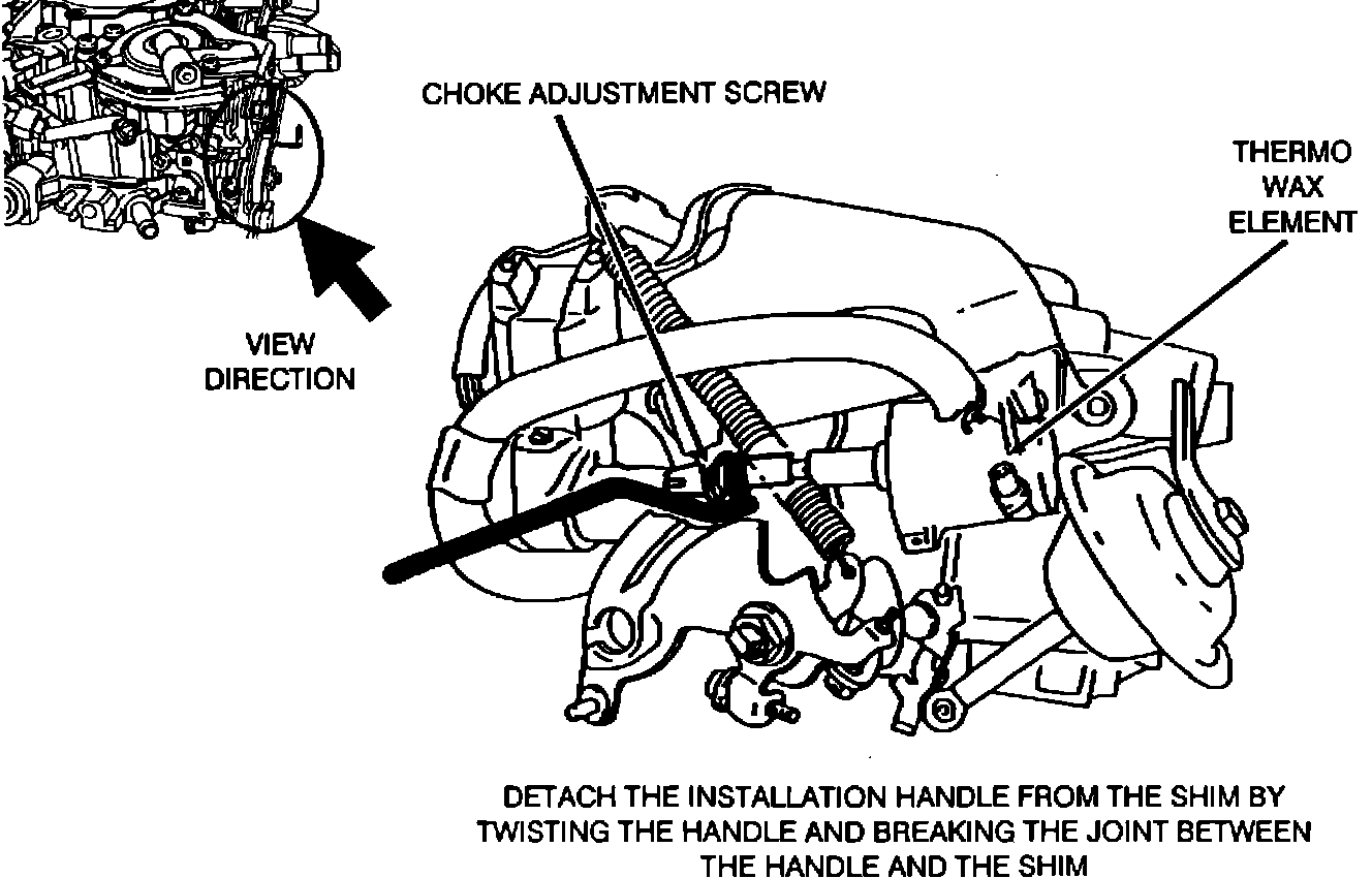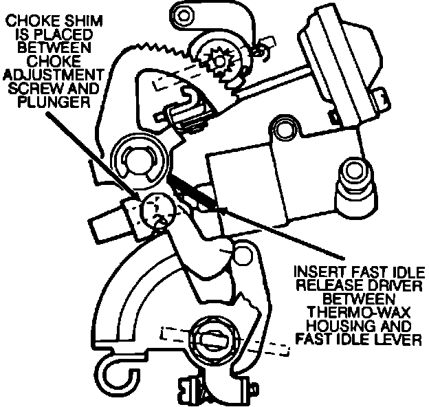 CAUTION: These choke shim installation procedures must be performed on a cool carburetor/thermo wax element.