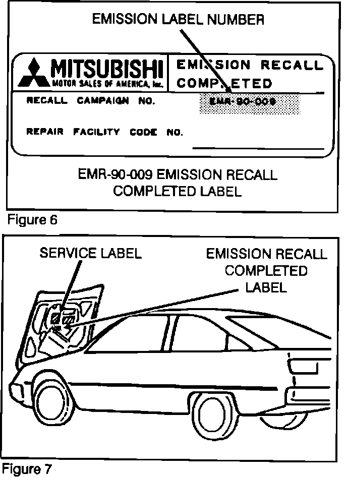 3. If the EMR-90-009 Emission Recall Completed Label IS NOT found, the previous recall was not performed. You MUST perform the EMR-90-009 repair procedures with the following changes: