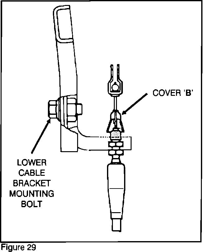 1. Raise rubber cover "B" (Figure 29), upwards to expose the cable stopper.