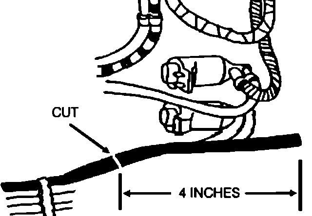6. Cut the removed white striped hose that was removed in step 4 about 4" from the end (Figure 8). Discard the cut end.