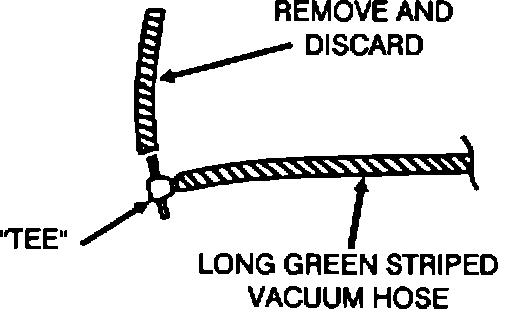 12. At the vacuum "TEE" end of the new long green striped vacuum hose remove and discard the short vacuum hose piece from the vacuum "TEE" (Figure 14).