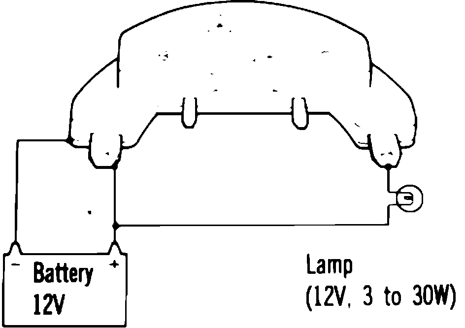 1. Connect a 12V, 3-30 Watt test lamp between igniter and battery, Fig. 4.