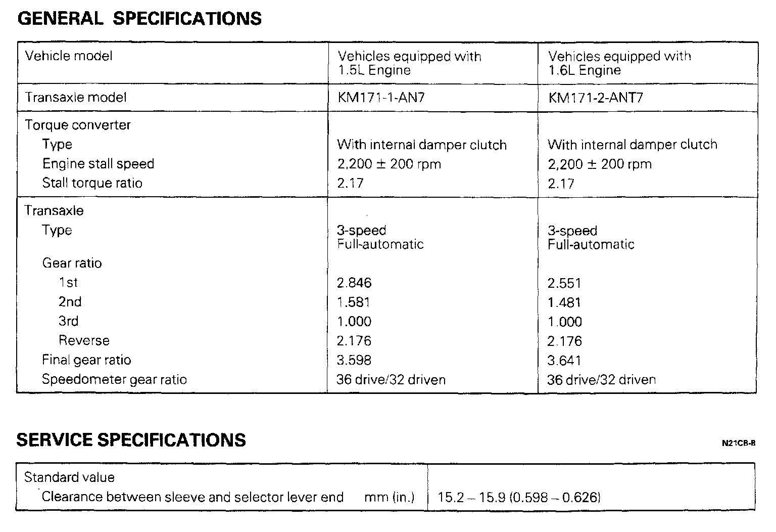 KM171 3-spd A/T, Gear Ratios / Clearance: