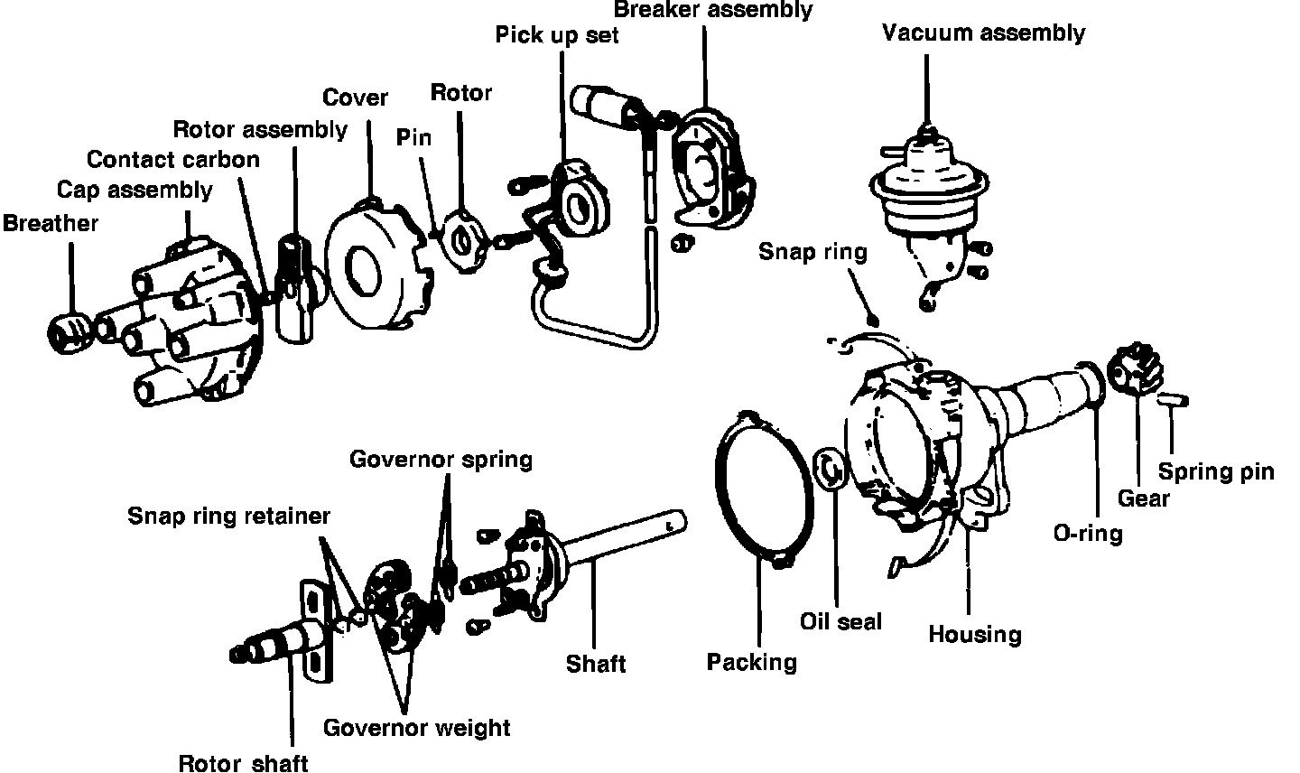 11. Attach rotor to rotor shaft, then the distributor cap to housing.