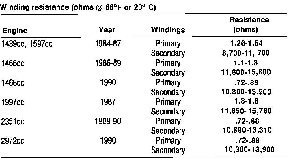 Fig. 7 Ignition Coil Specifications: