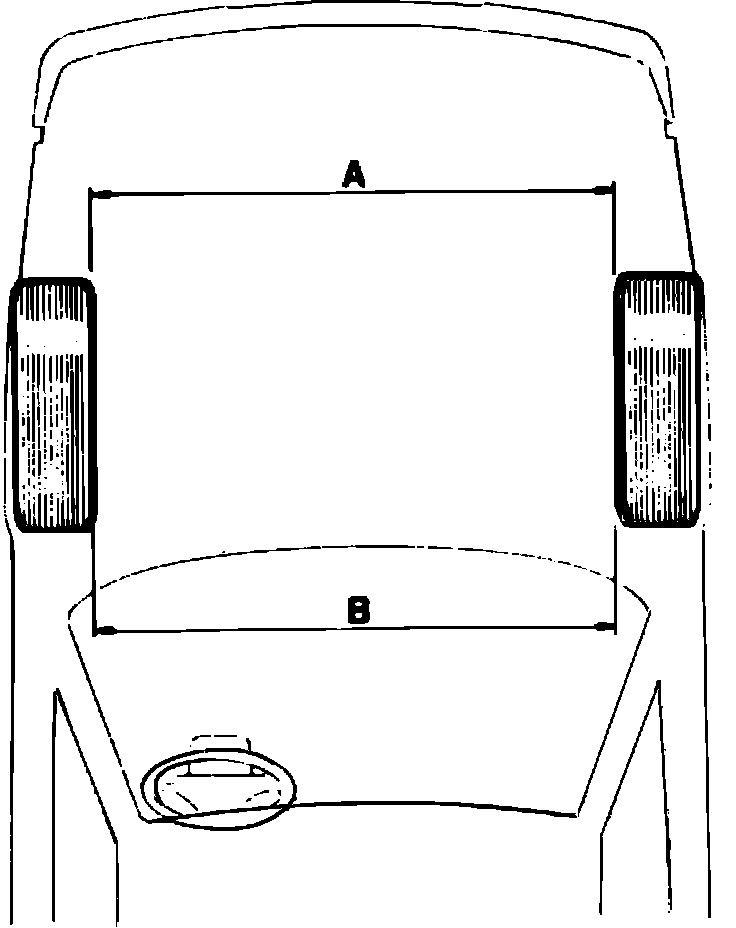 As viewed from above, the wheels must be set so that distances A and B, Fig. 4, measured at wheel rims and at axle height, are different at a given value. If distance A is smaller than distance B, the setting is known as toe-in. If distance A is greater than distance B, the setting is known as toe-out. The toe setting is given in inches (mm) and refers to the difference between A and B. If distances A and B are the same, the toe setting is 0.
