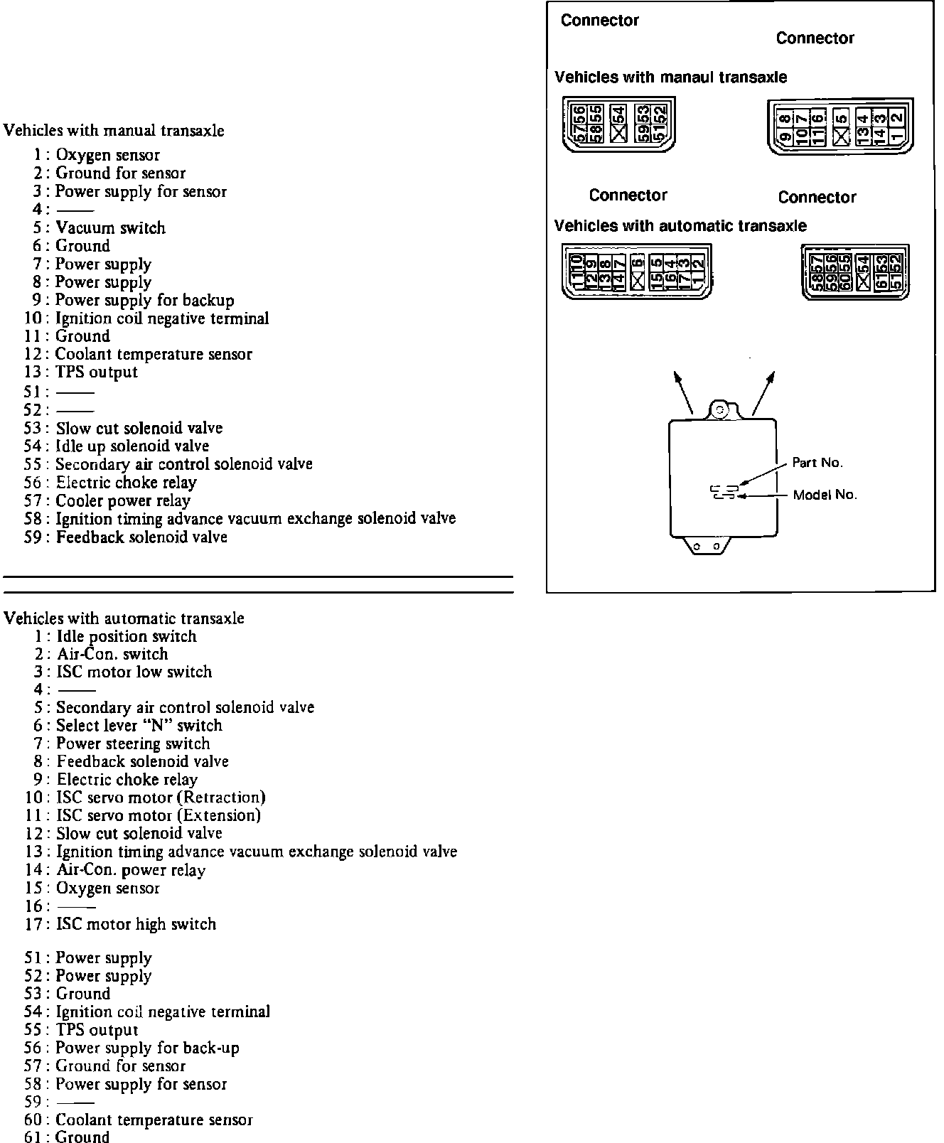 Fig. 25 Carburetor control unit terminal identification.: