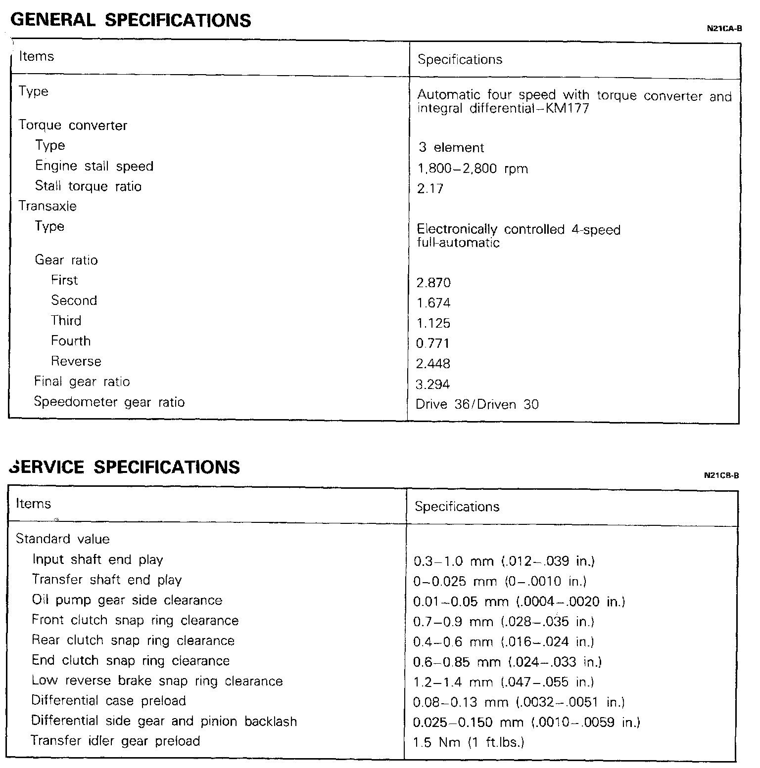 KM177 4-spd A/T, Gear Ratio & Clearance/End Play: