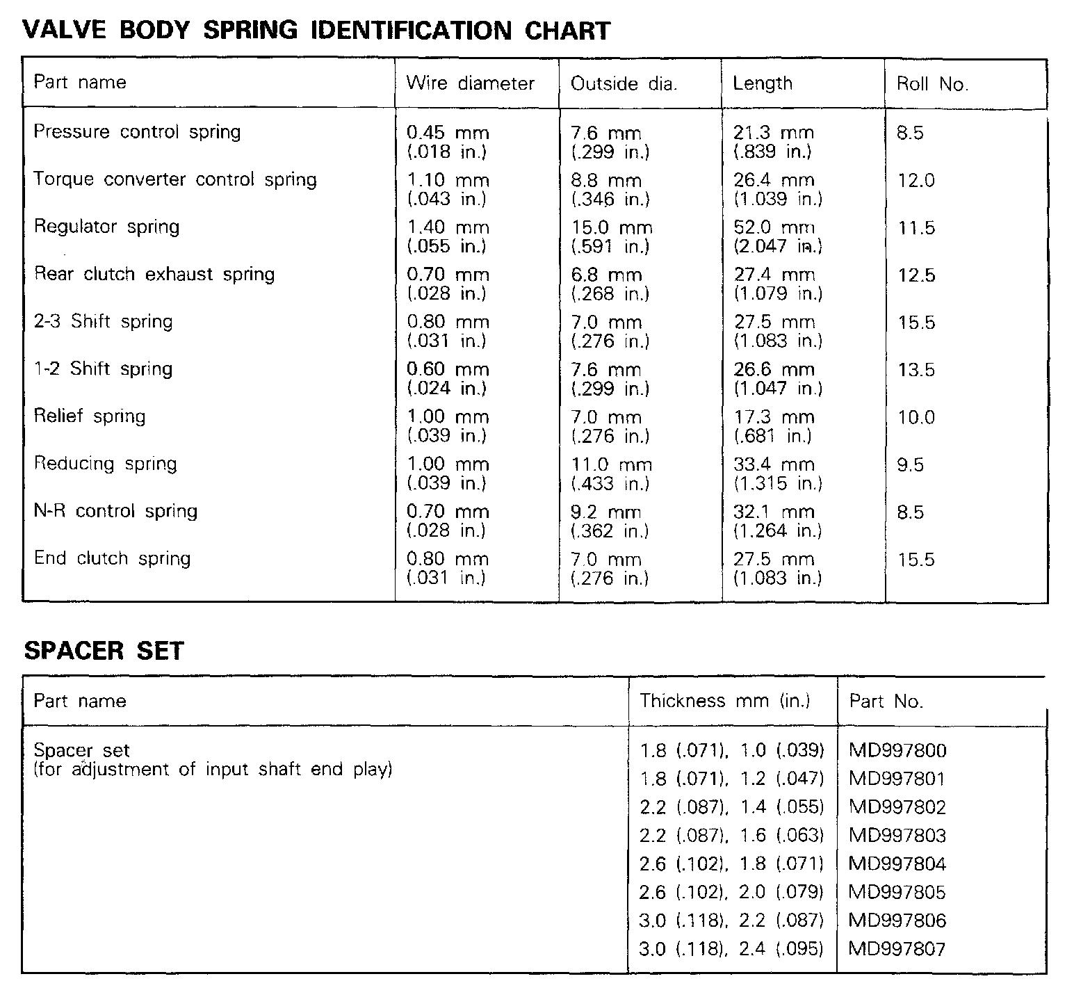 KM177 4-spd A/T, Spring & Spacer Dimensions: