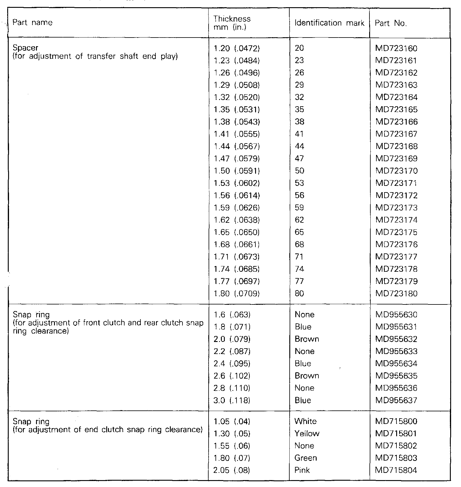 KM177 4-spd A/T, Transfer Shaft & Clutch Clearances: