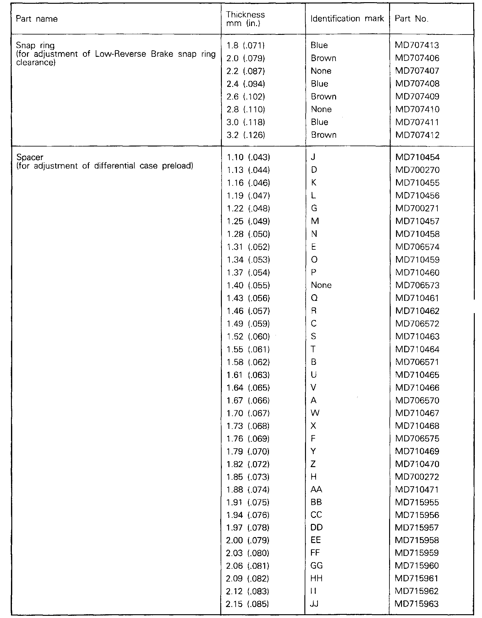 KM177 4-spd A/T, Low-Reverse Clearance & Differential Preload:
