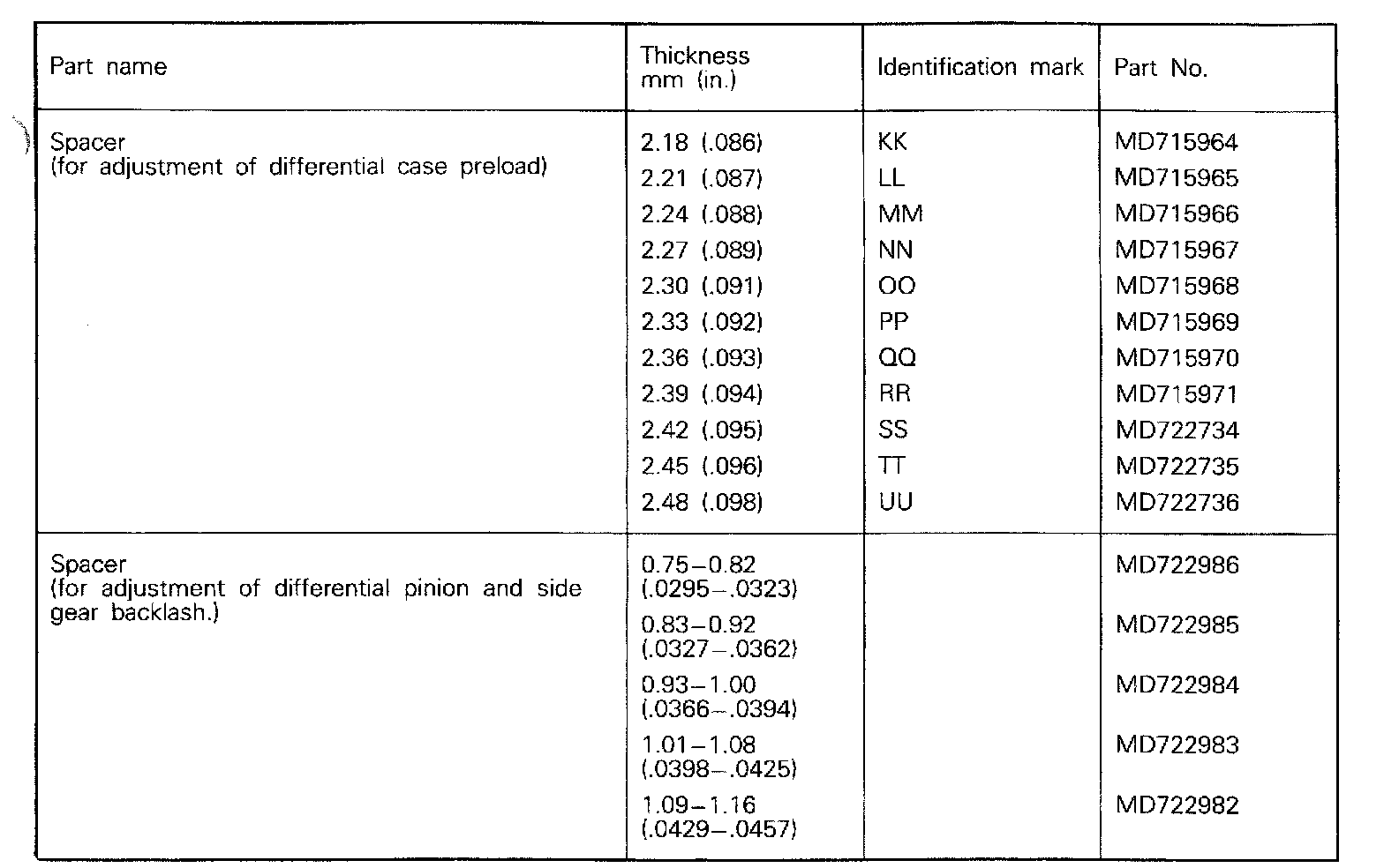 KM177 4-spd M/T, Differential Preload & Pinion/Side Gear Backlash: