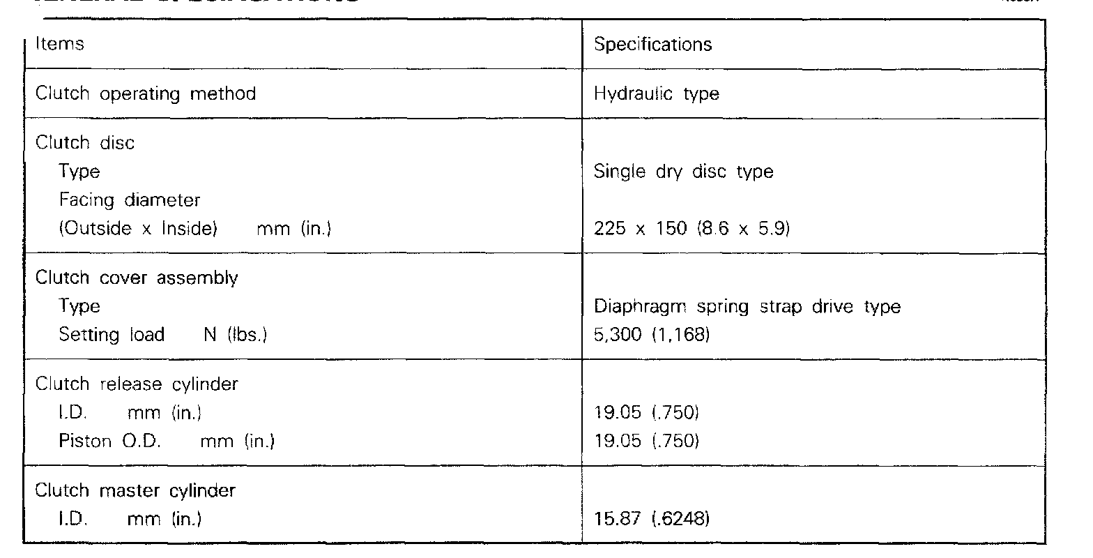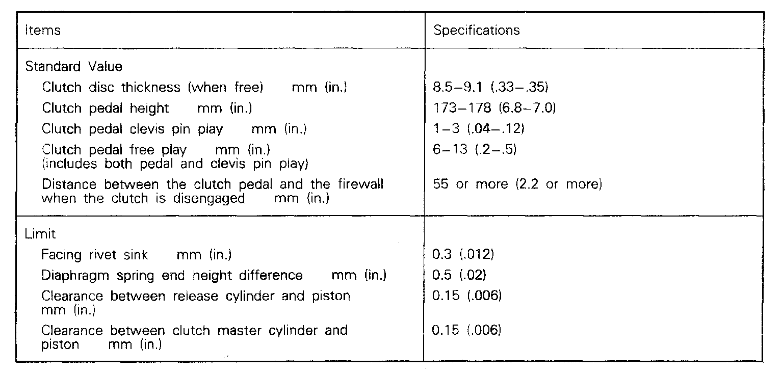 KM210-1 5-spd M/T, Clutch Standard Value & Limits: