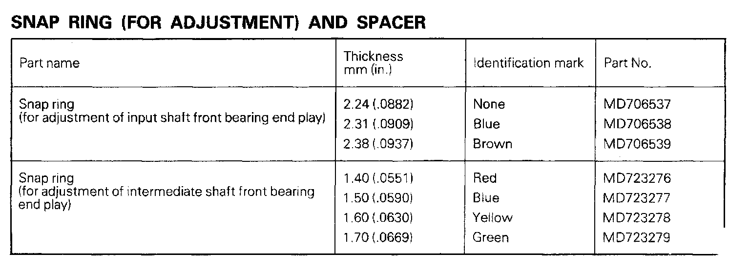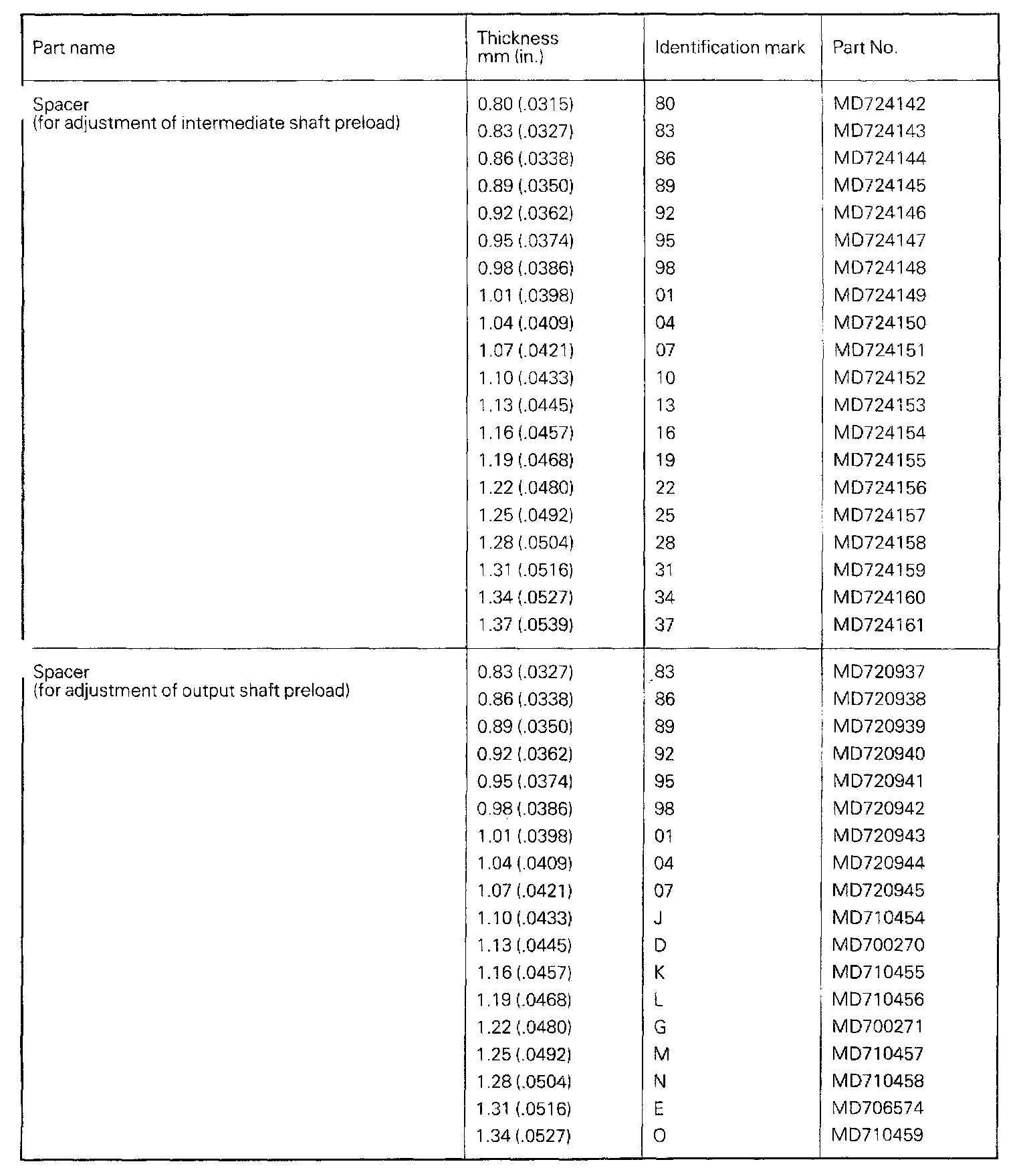 KM210-1 5-spd M/T, Intermediate & Output Shaft Preload: