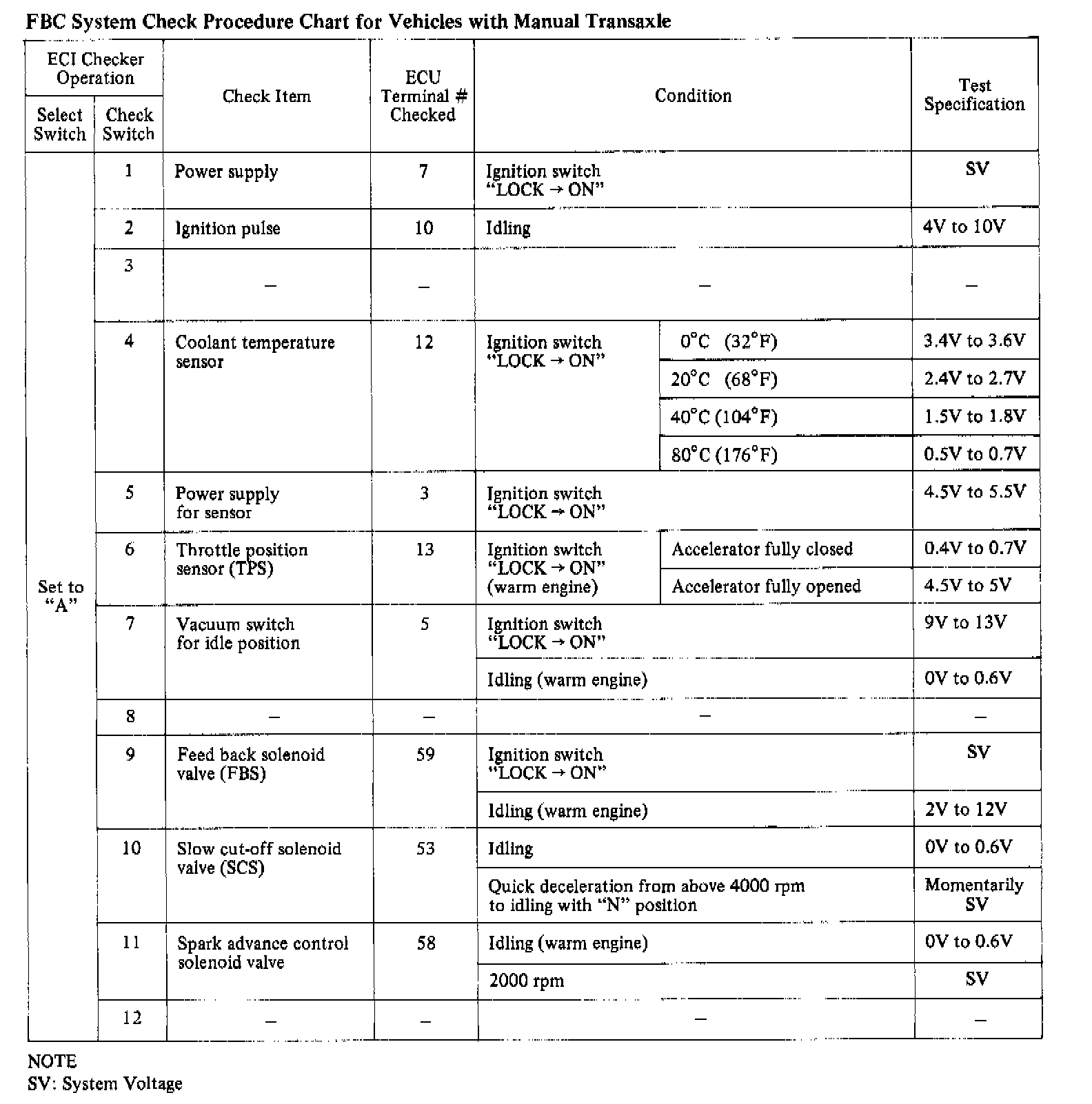 FBC System Check Procedure - Manual Transaxle