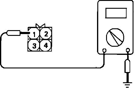 2. Using a voltmeter, measure the power supply voltage between the harness connector terminal 1 and ground.