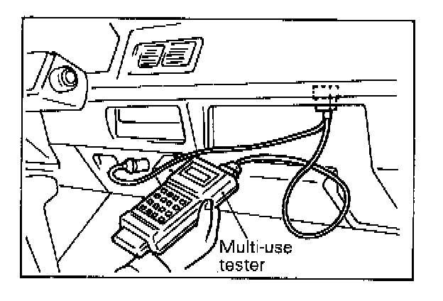 (2) Connect the tester side connector of the multi-use tester to the connector for diagnosis (located in the glove compartment).