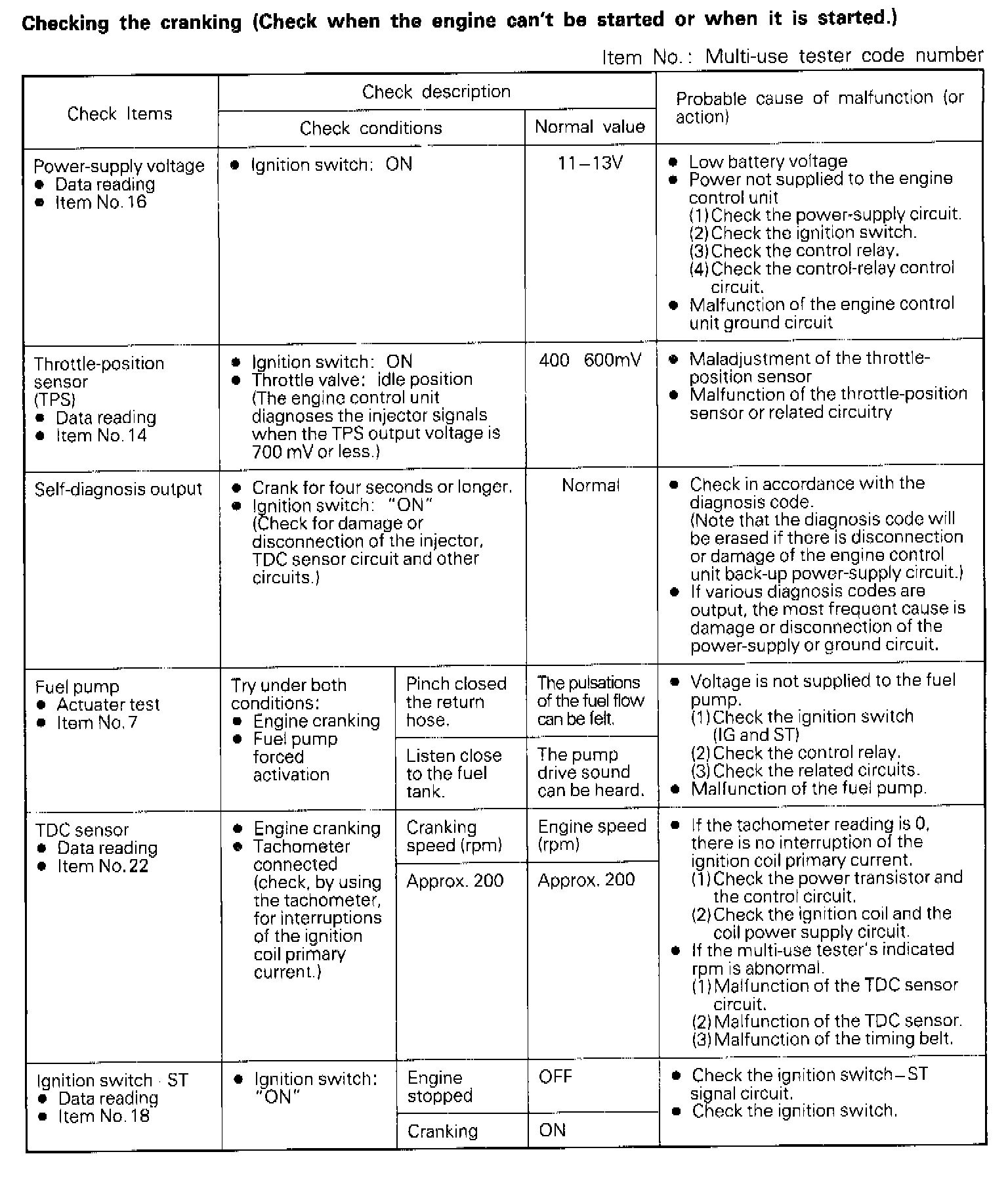 NOTE: If the malfunction indicator light (engine-check light) illuminates while the checks are being made, check the self-diagnosis output.