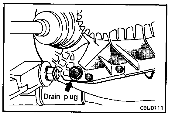(2) Remove filler and drain plugs and allow the transaxle oil to drain.
