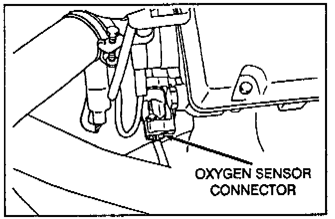 3. Disconnect the oxygen sensor connector and remove the oxygen sensor wire from the wire supports/retainers.