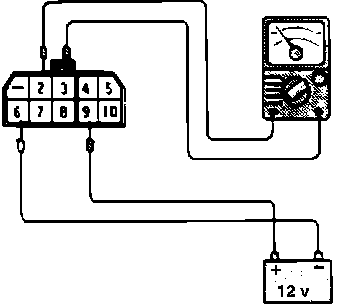 2. Supply 12 vdc to relay terminals 6 (-) and 9 (+). Using an ohmmeter, check for continuity between terminals 2 and 3. Refer to Fig. 2.