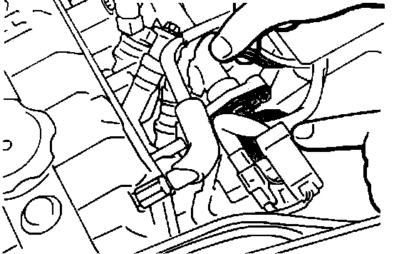 The fuel pump drive terminal (shown hooked-up) is located in the forward right corner of the engine compartment next to the battery.