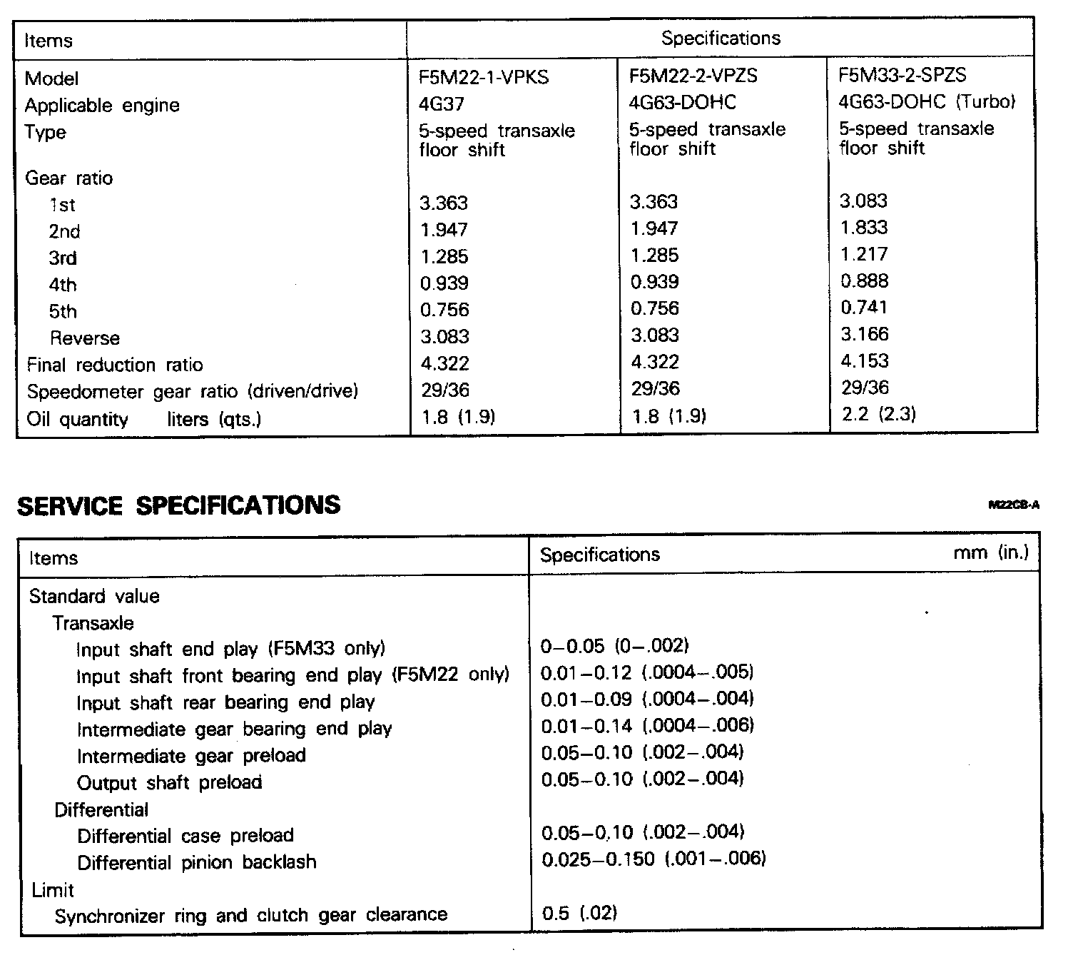 F5M22/F5M33 5-spd M/T, Gear Ratio / Standard Values & Limit: