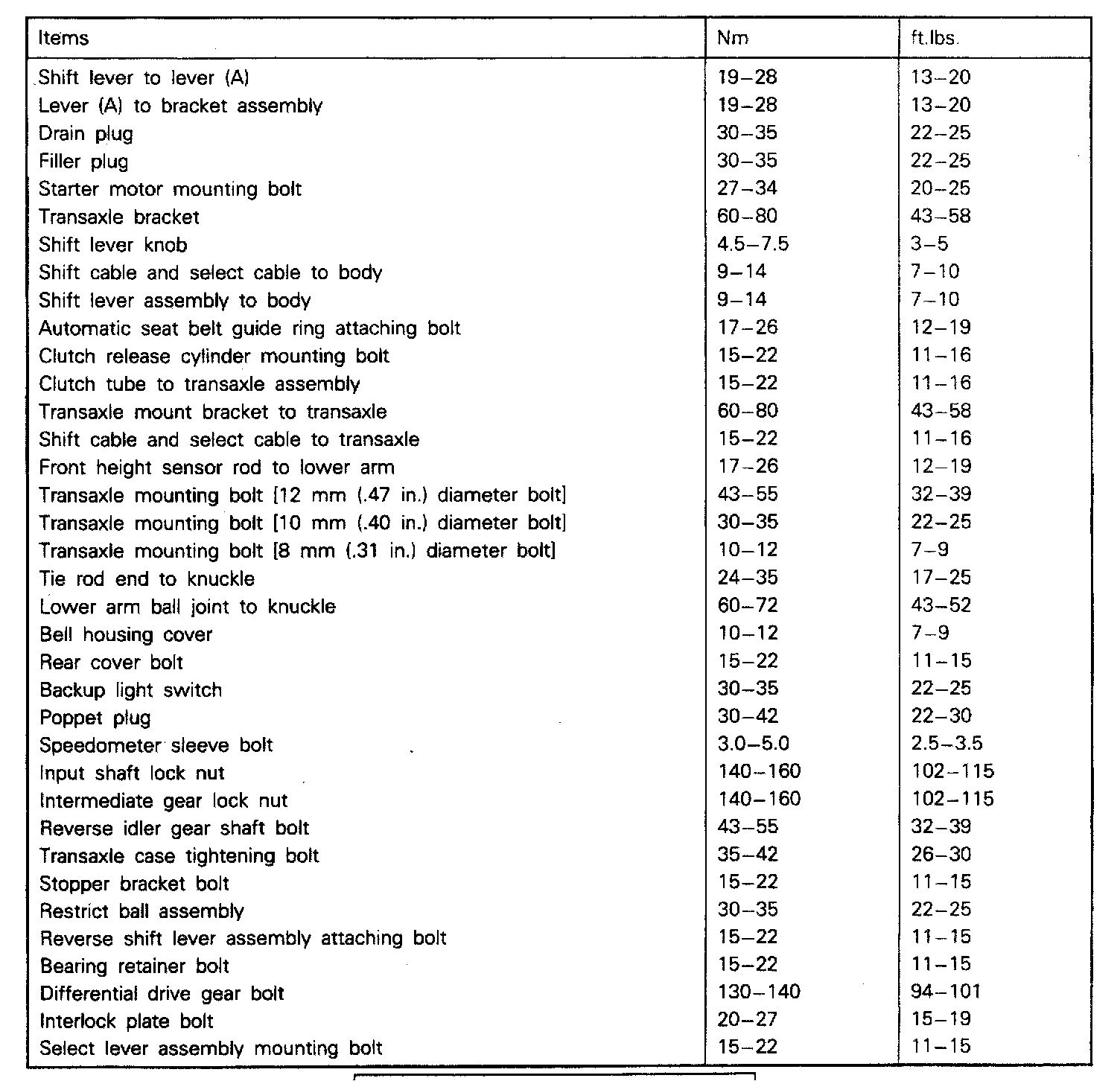 F5M22/F5M33 5-spd M/T, Transaxle Torque: